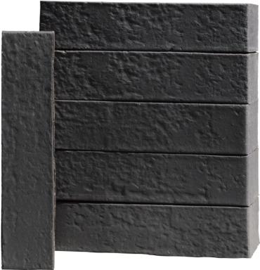 가벼운 엠보싱이 있는 검은색 표면의 와이어 컷 벽돌.